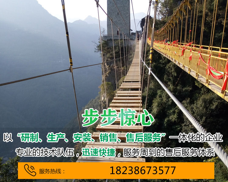 新鄉市星輝游樂設備有限公司是一家主要經營木質吊橋,玻璃吊橋,網紅橋,懸崖秋千,叢林穿越,棧道工程,玻璃水滑道,水上趣橋,玻璃懸挑平臺,玻璃觀景臺,滑索項目,滑草項目,滑道工程,飛拉達,拓展器材的安裝,維修及銷售等游樂設備的公司。 多年來,我公司以管理、技術、生產設備的優勢、靈活的銷售模式和先進的科學技術為保障,生產出安全、刺激、新穎于一體的高品質產品,搶占市場先機。產品以新思想、新概念、高標準的審美要求,外觀造型優美,內部設計合理,色澤經久耐用,做工精益求精,贏得全國新老客戶的青睞。 公司設立客服中心,為客戶提供方便、快捷、優質、高效的售前和售后......查看詳情 >